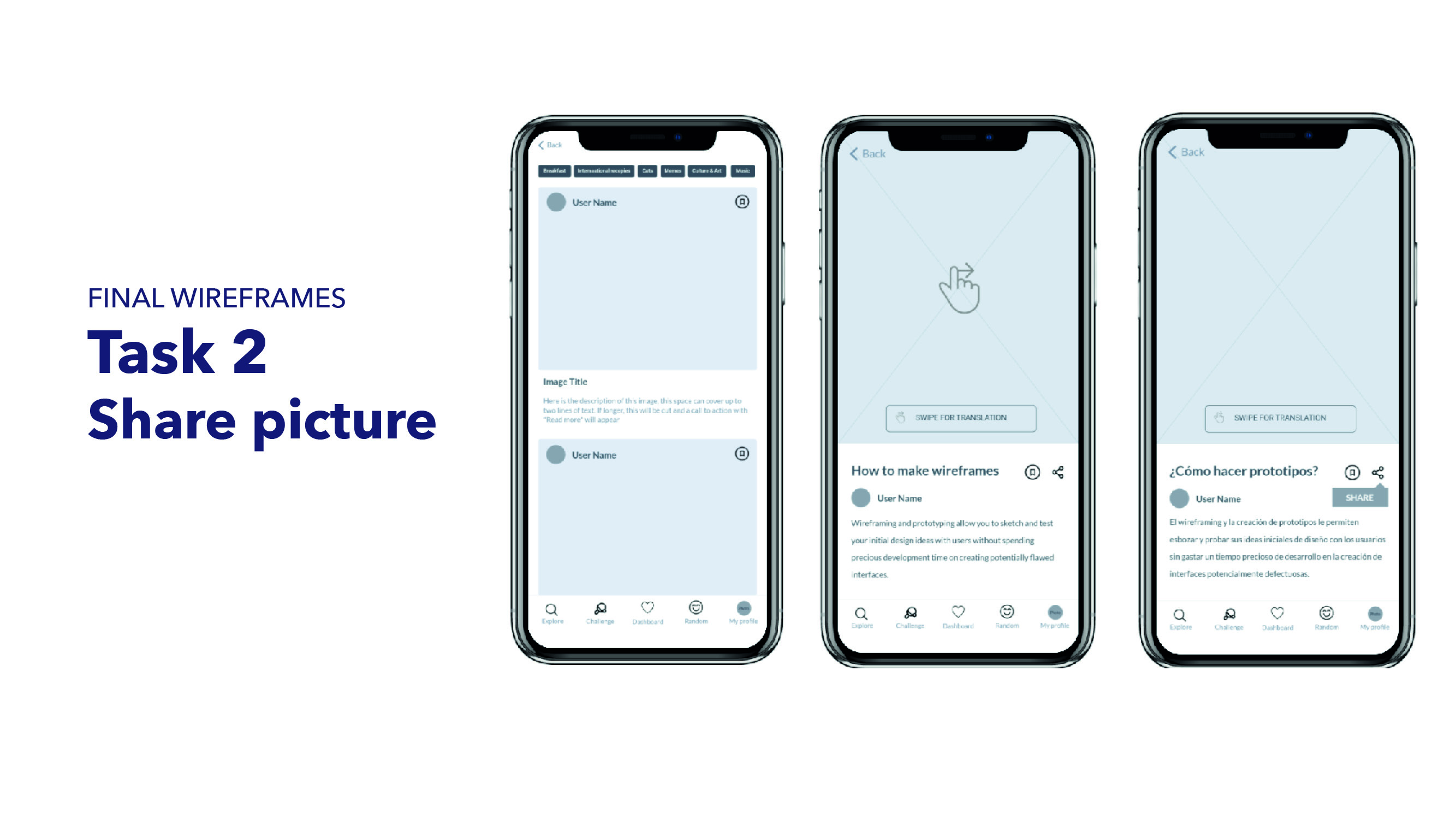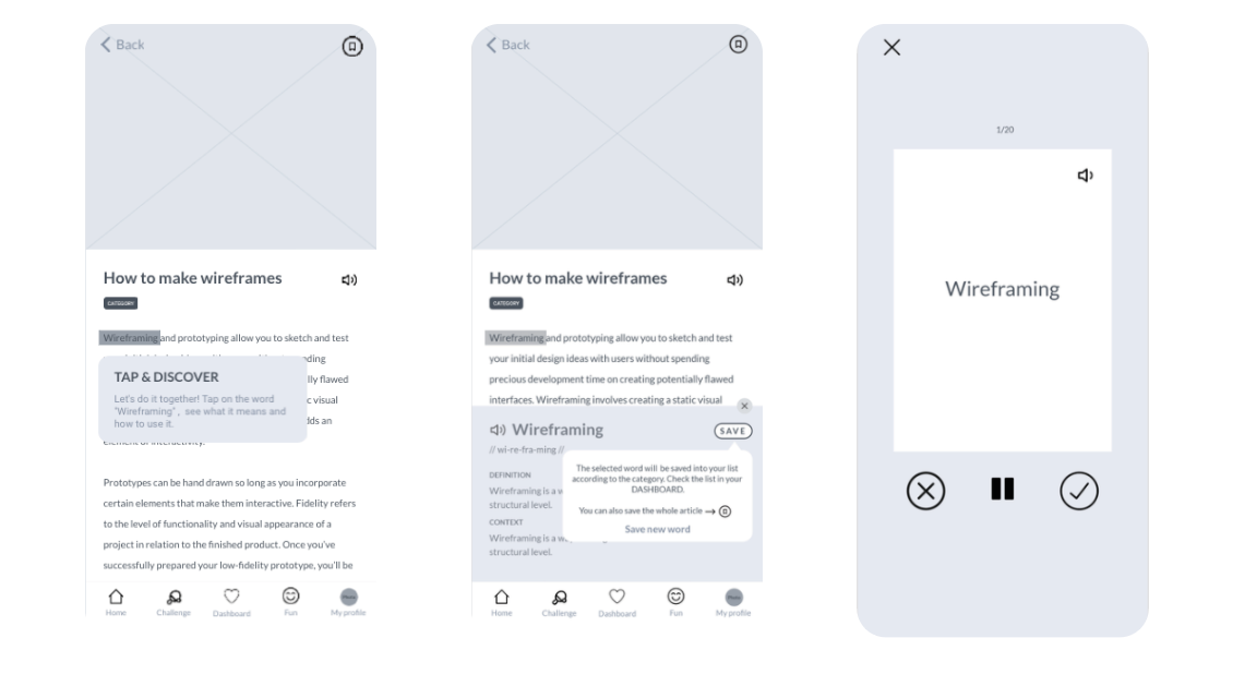 From this hand-made wireframes, I jump to the digital prototypes.